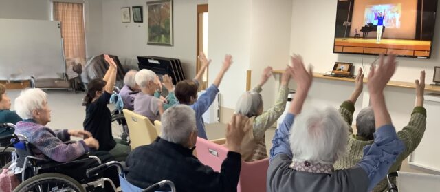 曲に合わせてしっかり体操&漫才鑑賞&歌を歌いました。