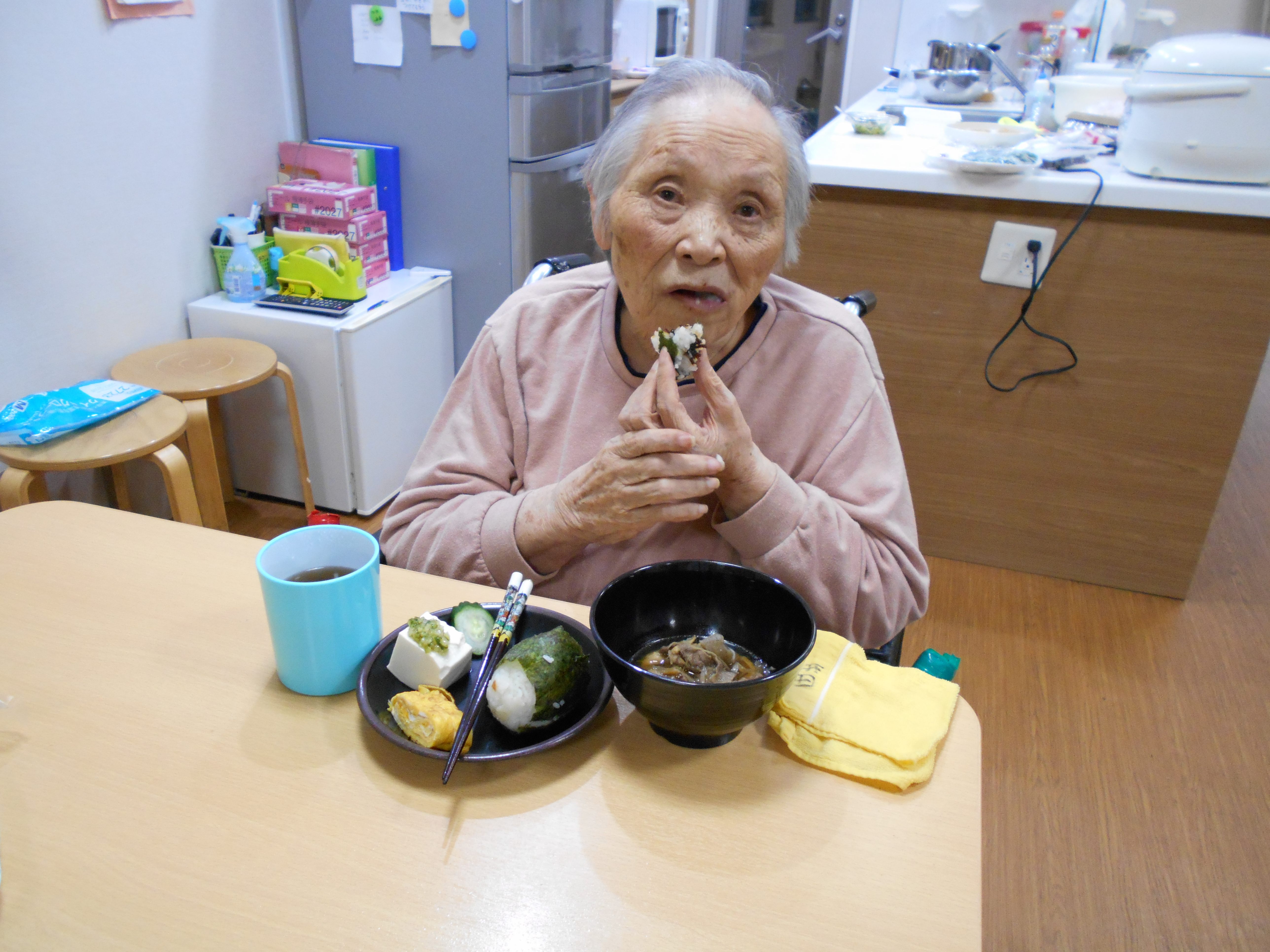 先月に引き続き、今月も別のユニットで調理レクを行いました。ご入居者の出身地でもある「山形」をテーマにし、牛肉と里芋・ゴボウなどが入った『いも煮🍲』と、CMにもなっている『山形のだし🍆』を豆腐にかけ、新米のコシヒカリを『おにぎり🍙』にして、美味しくて楽しい時間となりました☆