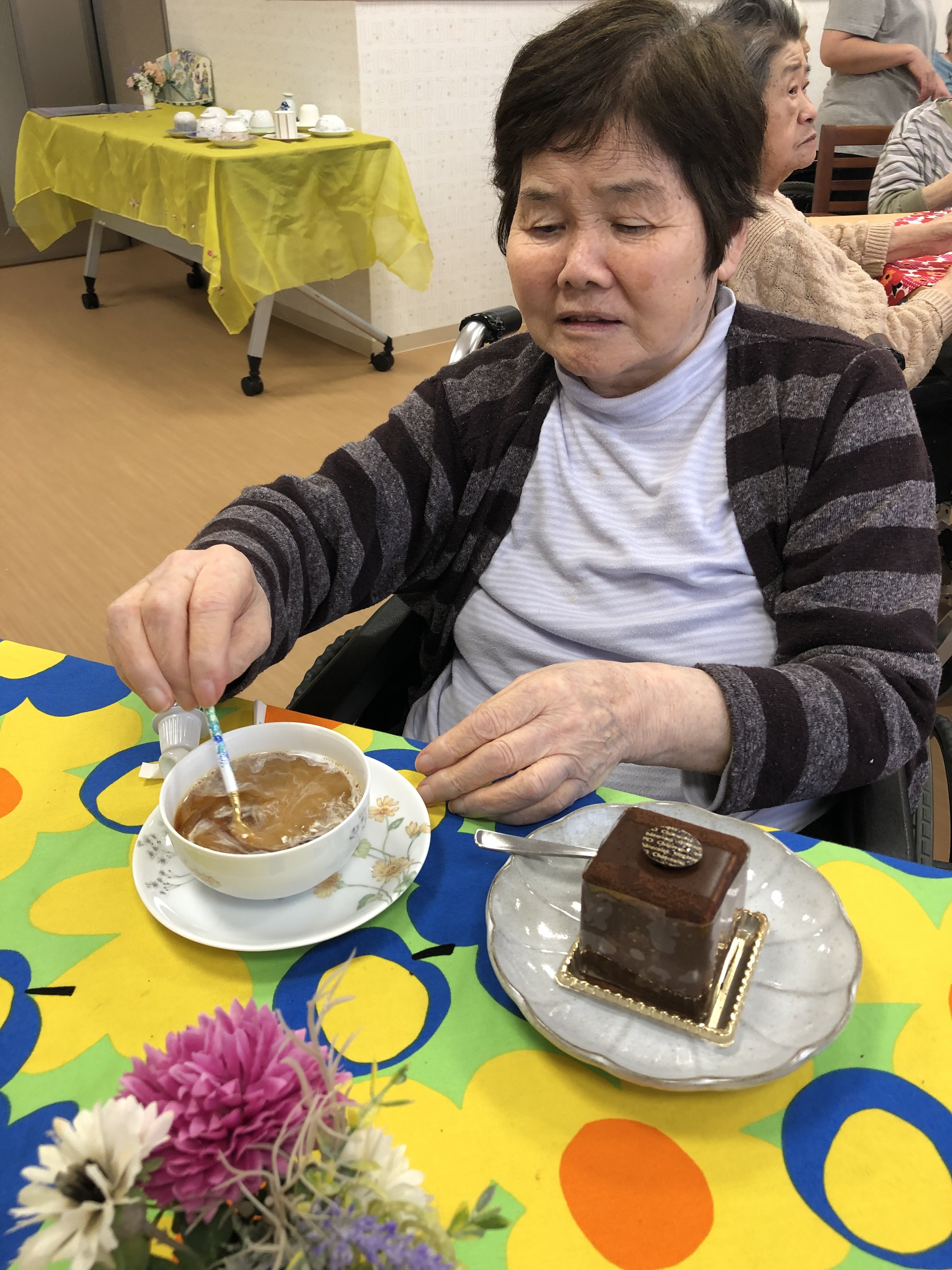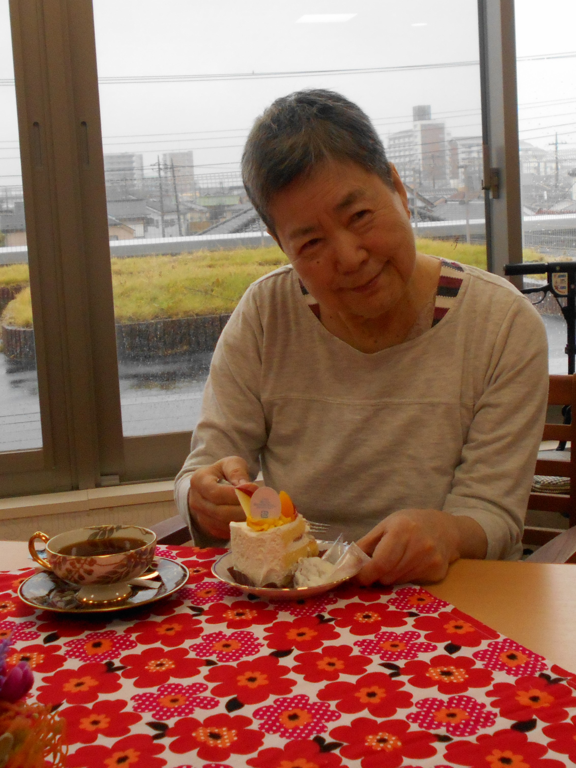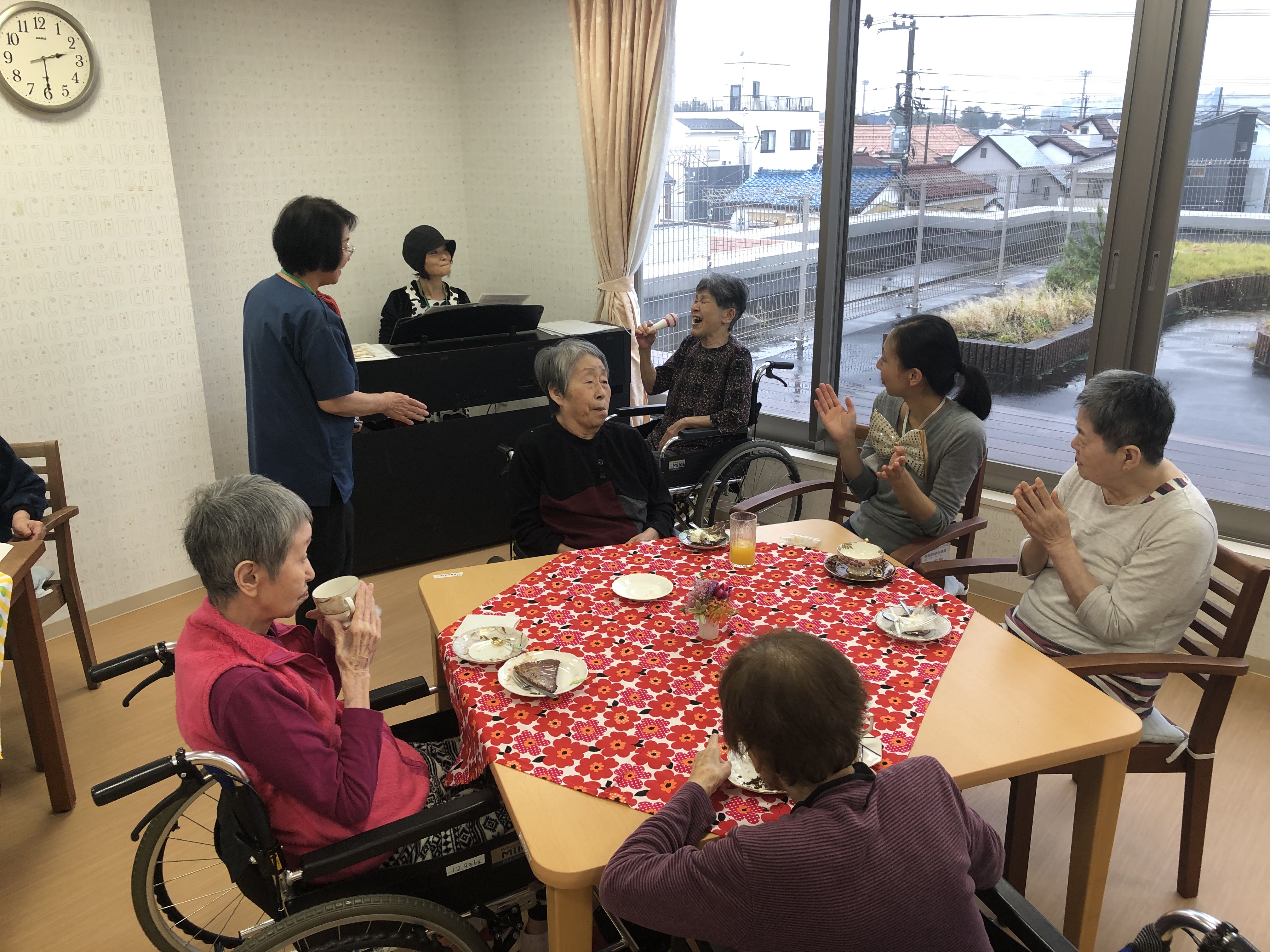 令和元年10月29日 カフェクラブ 2019 年 11 月 4 日 前回に続き、2グループ目のカフェクラブを開催しました!今回もお気に入りのカップを選んでから、お席のメニューで好きなものを頼み🍰、挽きたて淹れたてのコーヒーも喜んで頂きました☕ 注文が落ち着いたところで、今回は栄養士がピアノの生演奏を披露し、自然と合唱になり、食べるのを忘れる方もいらっしゃいました(笑)