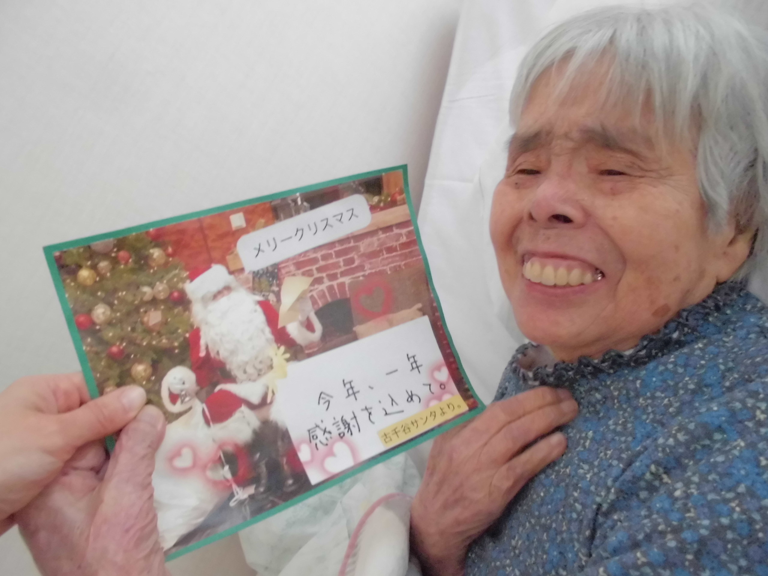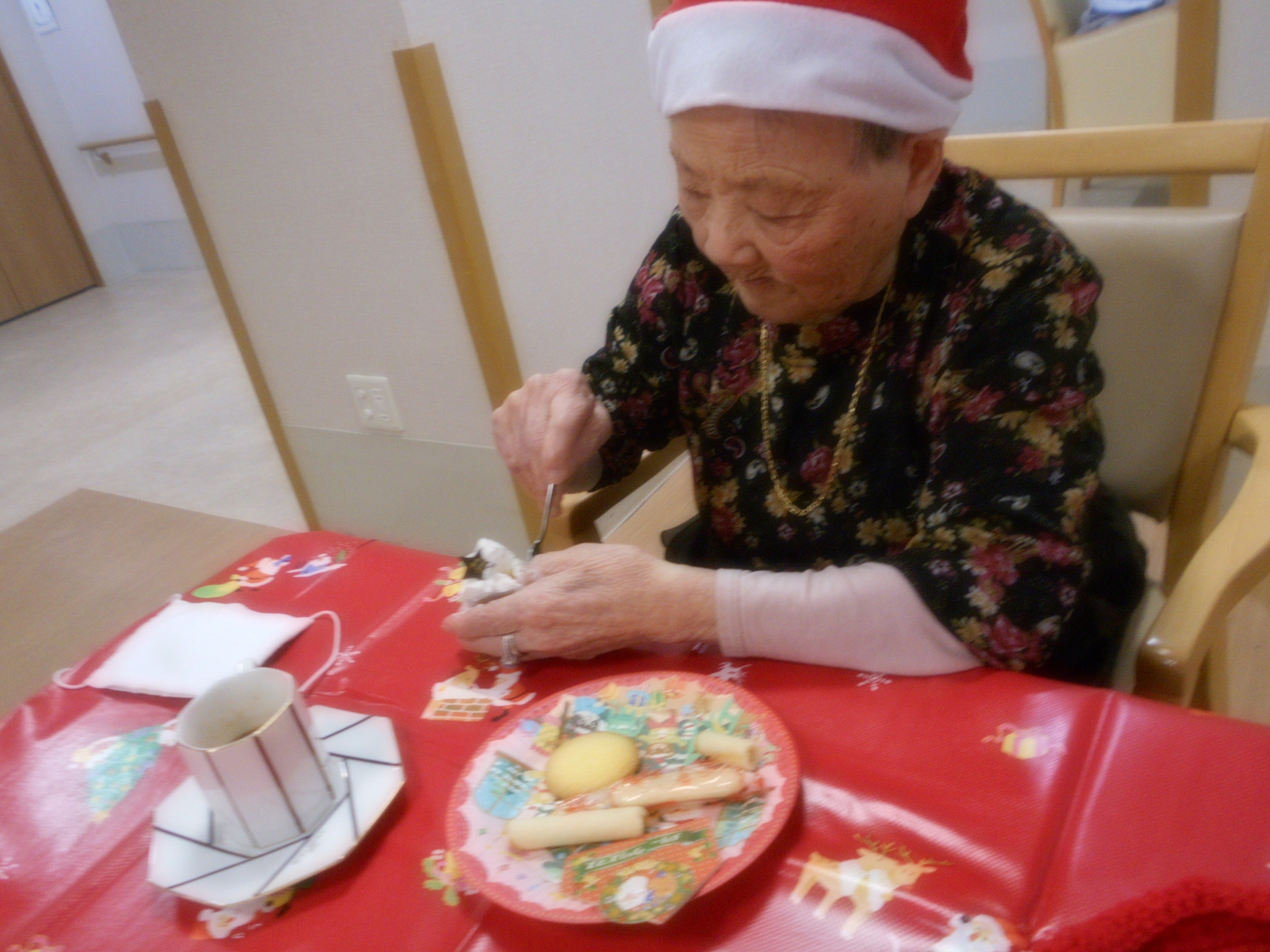 寅年 2022 年 1 月 3 日 本年もよろしくお願いいたします。 昨年末の様子を少しご紹介 ユニットごとにビンゴ大会やお寿司パーティー・クリスマス和菓子でお茶会、ケーキ&クリスマスソング と楽しみました。 新年はおせち料理、元旦には古千谷の氷川神社へのお参りや甘酒を楽しみました。 良い年となりますように。