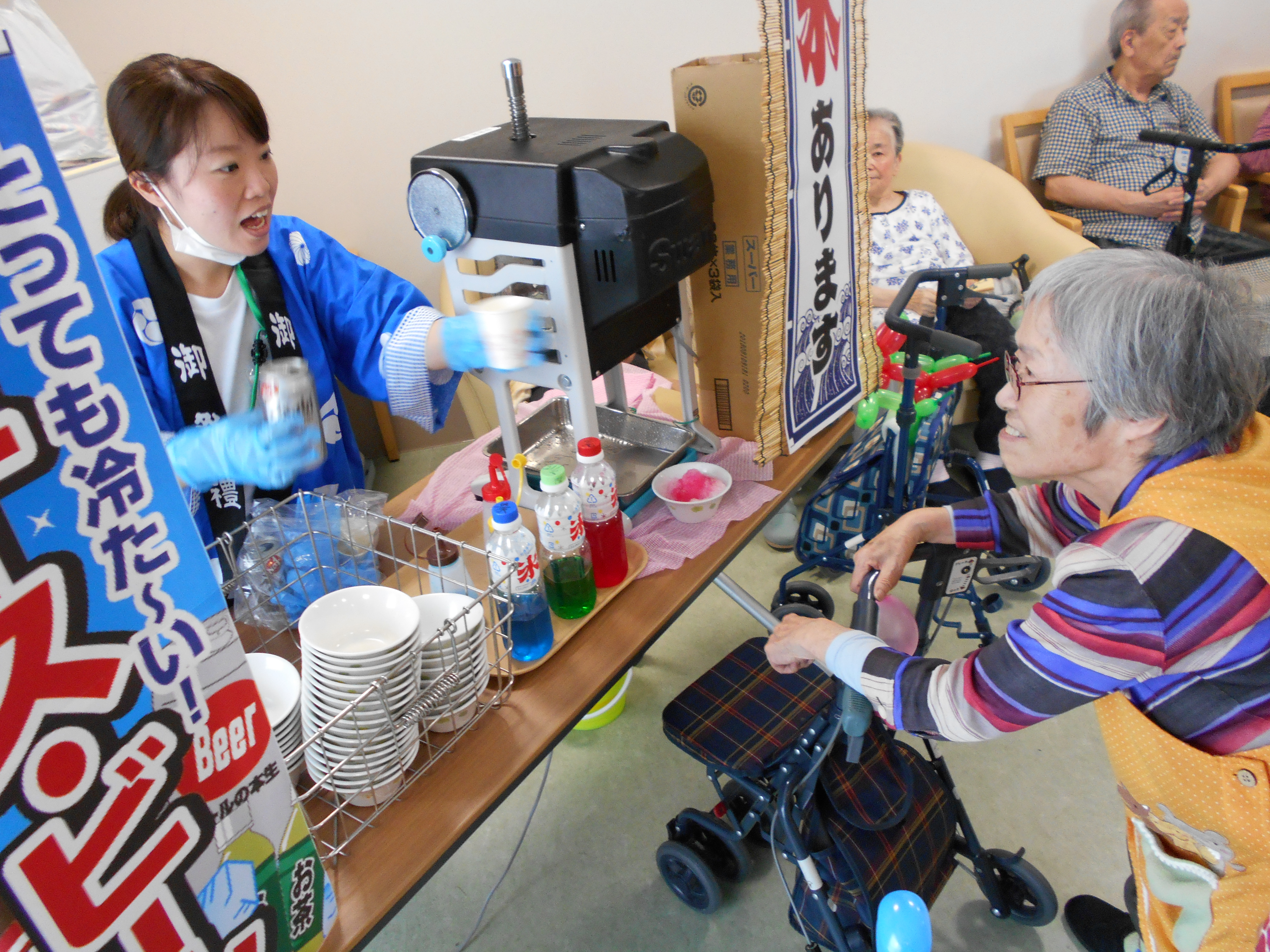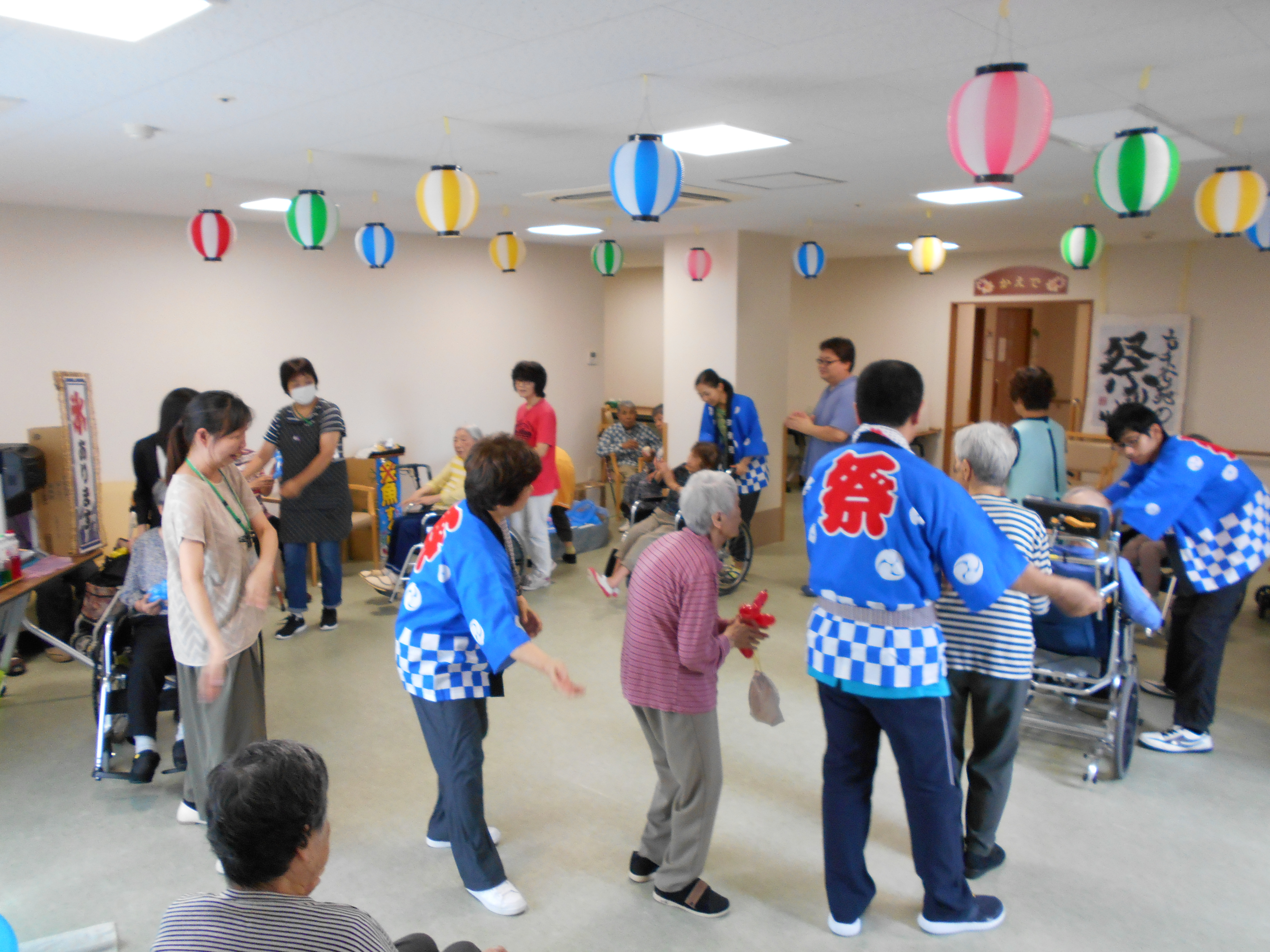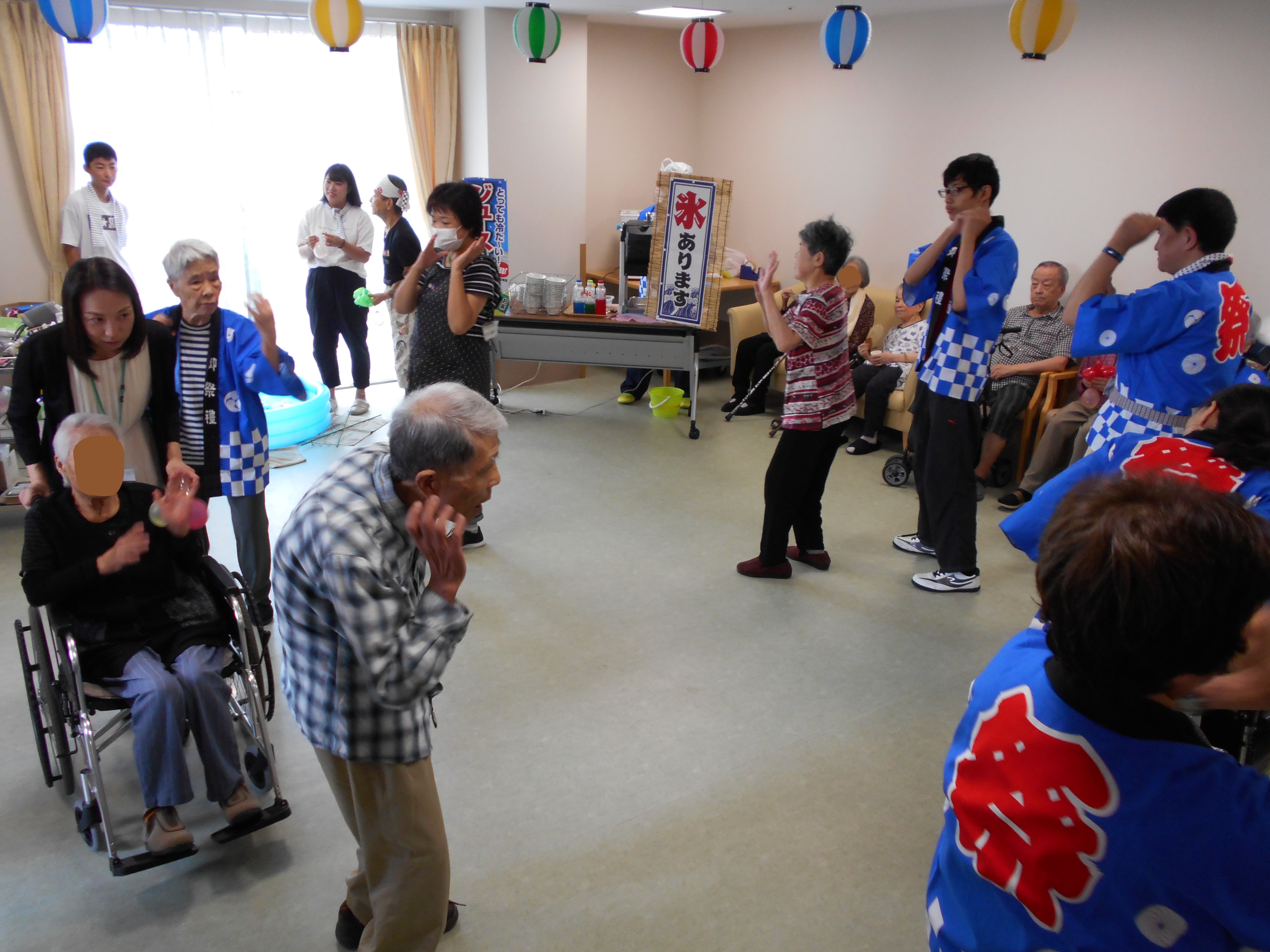 平成30年8月16.23.30日 納涼祭 2018 年 9 月 3 日 今回は、“日本の夏を感じる”をテーマに盆踊りや出店を楽しんだ、納涼祭の様子をお送りします 皆さん聞き覚えのある音楽が流れると…Let’sダンス✫ リズムに乗って自然と体が動き出していました👫🎶 かき氷やビール、たこ焼き風おやつに舌鼓を打ち、夏の暑さを吹き飛ばす、楽しい時間となりました!