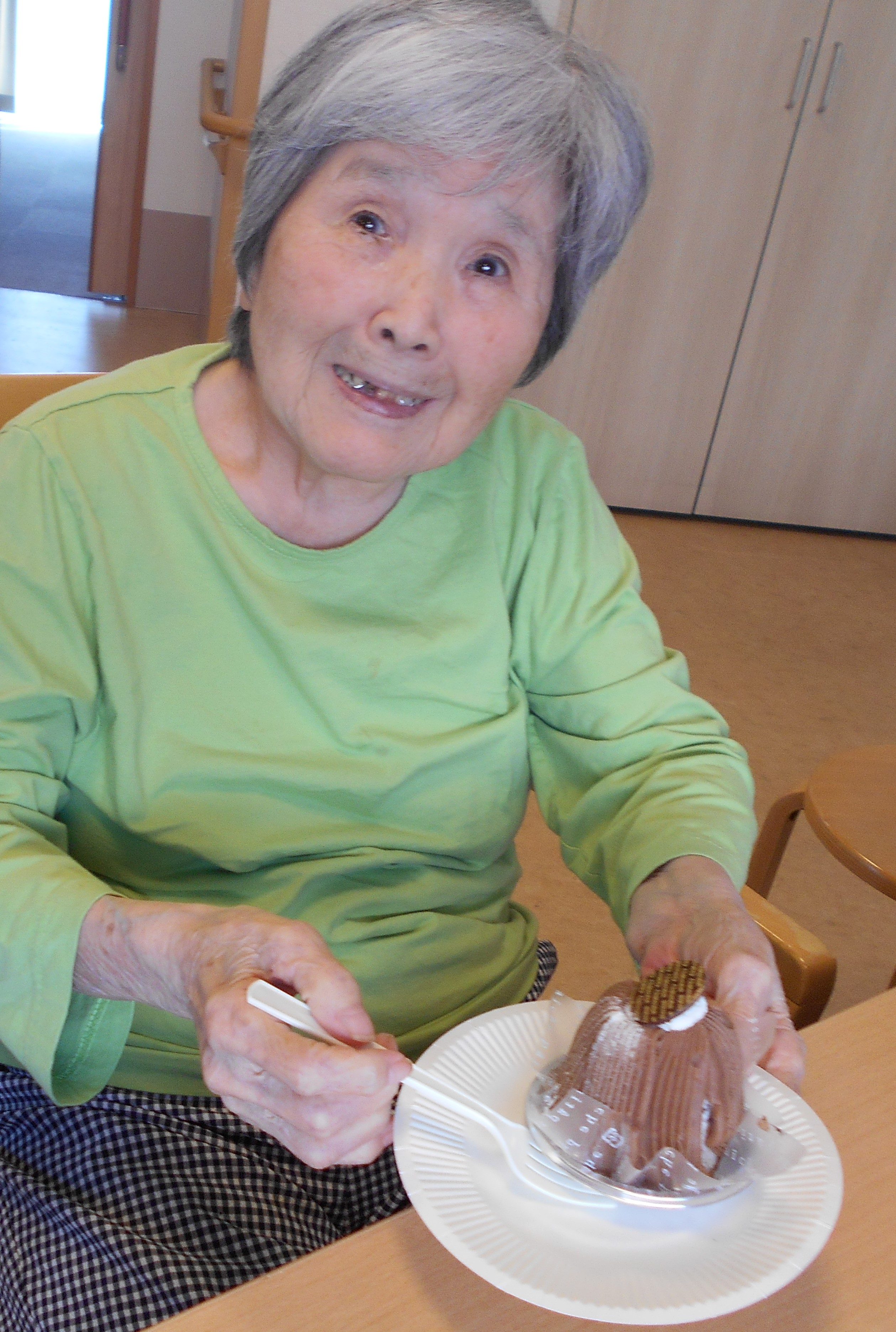 敬老会 2021 年 9 月 27 日 地域の安達家さんの和菓子でお茶をいただきました。おめでたい鶴のお菓子です。 洋菓子を楽しんだユニットもあります。ココファームさんの紅白ぶどうジュースで乾杯です。 笑顔あふれる日々が続きますように。 ご面会の再開については、現在 直接お会いいただけるように前向きに進めております。 時期等については、HP上でお知らせいたします。