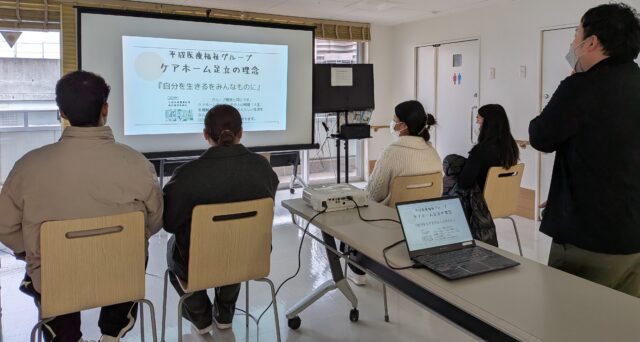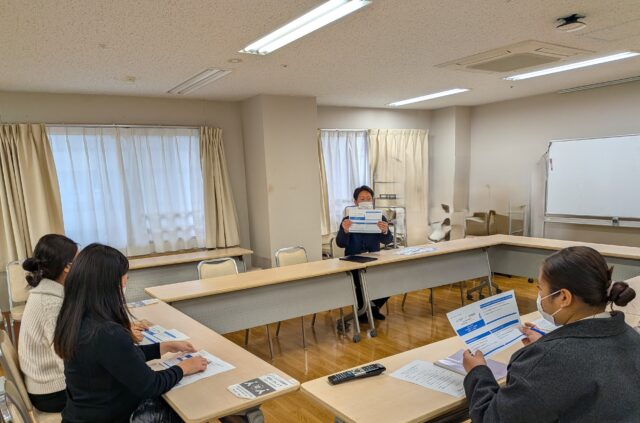 そして、紫磨園さんへ 介護福祉士の魅力・強みのお話に皆さん うんうんと頷き熱心にお話を聞いてくださいました